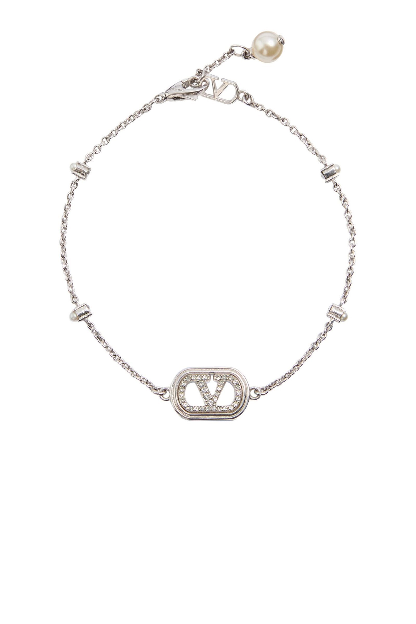سوار فالنتينو غارافاني المميز بشعار VLogo مصنوع من المعدن واللؤلؤ والكريستال