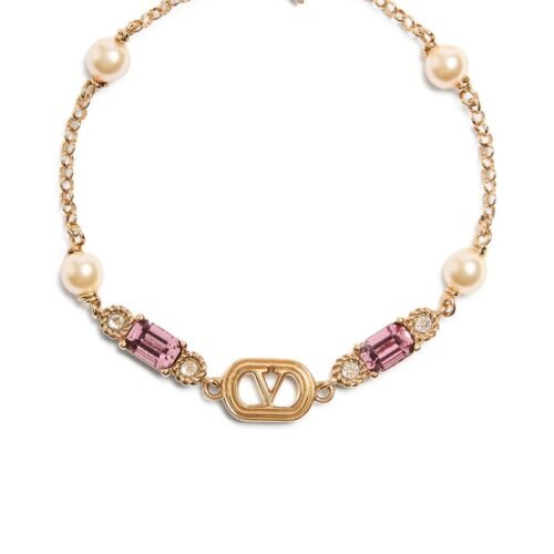 Valentino Garavani Ovalette Embellished Bracelet with Pearls and Crystals